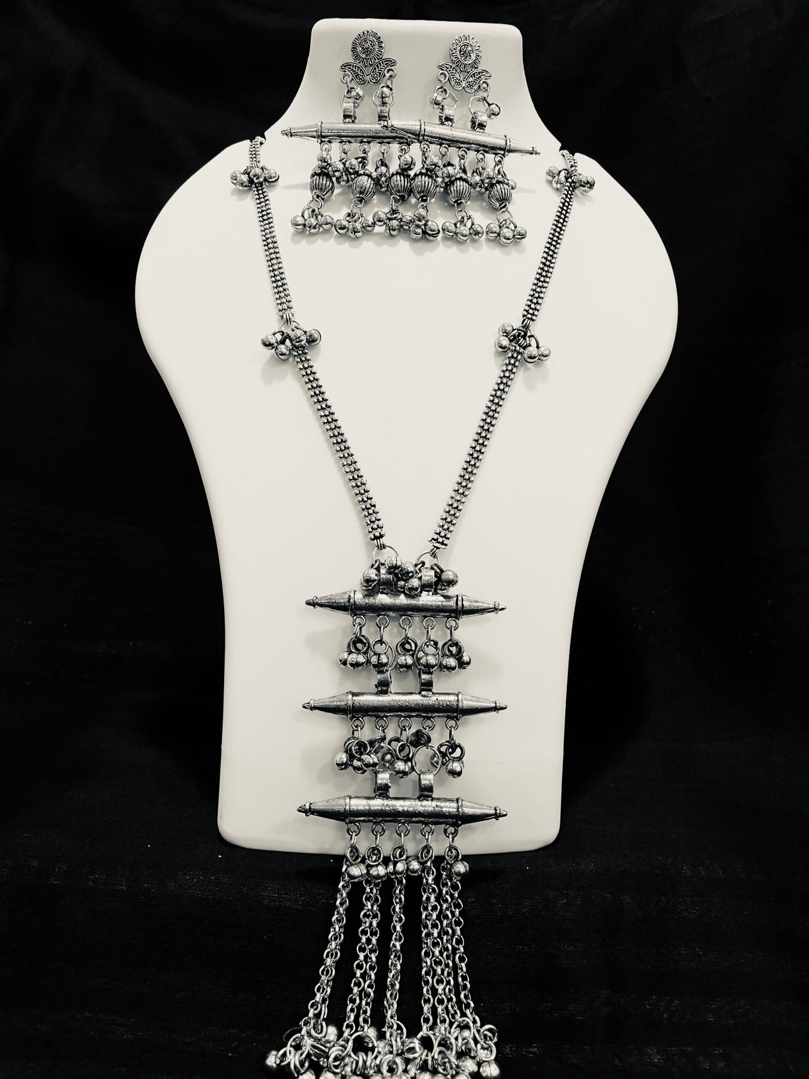 Title: Elegant Oxidized Bohemian Necklace Set with Long Pattern – Timeless Tribal Charm