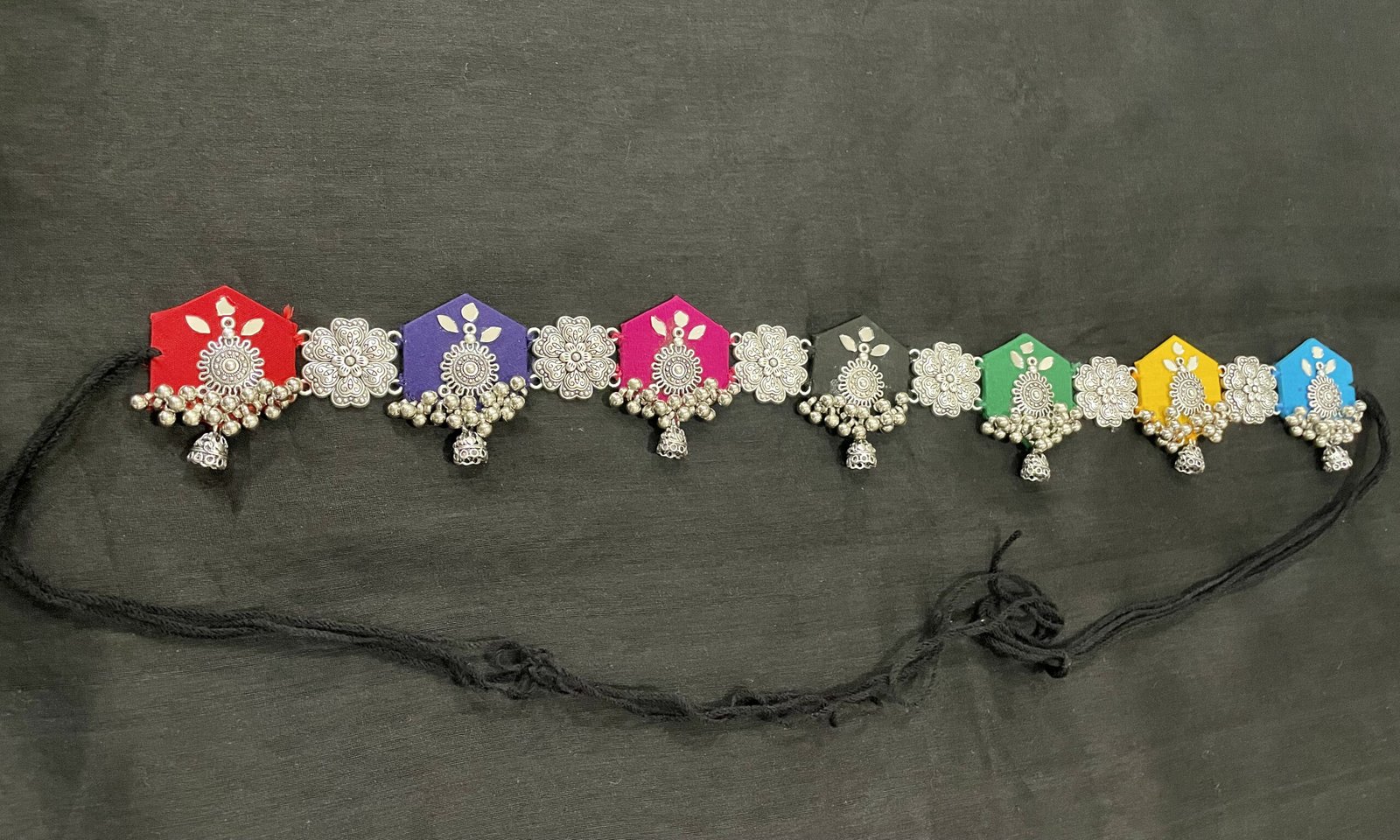 - Multicolor Jhumka Charms: Adds a vibrant and festive touch.