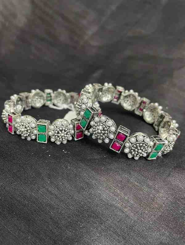 Product Title: Oxidized Boho Kada with Colored Stones & Pearls – Statement Jewelry for Every Occasion