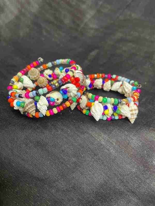 - Design: Artistic shellwork combined with colorful, vibrant pearls for a beachy, boho feel.